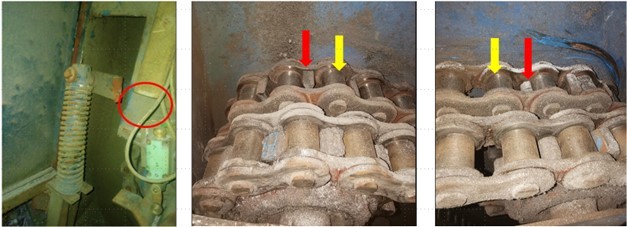 其三,承重链上部链轮及链条本身磨损严重,且张紧机构已达调整极限。经测量检查,承重链上部的链轮齿面磨损程度远超正常使用范围,齿顶变得十分平缓,无法与链条进行有效咬合;同时,链条的滚轮也因长期磨损而出现变形,链条的整体长度被拉长,导致链条松弛。更为关键的是,用于调节链条张紧度的上部张紧机构已经调整到了最大位置,无法再通过调整张紧机构来弥补链条松弛的问题,这使得链条在运行过程中更容易出现跳齿现象,最终与其他因素叠加,引发了此次严重故障。文章源自炬鼎熔炉-江浙沪铝合金集中熔化炉厂家|中频感应熔炼炉|铝屑熔解炉报价-品牌直供·节能技术-https://www.judrl.com/5293.html